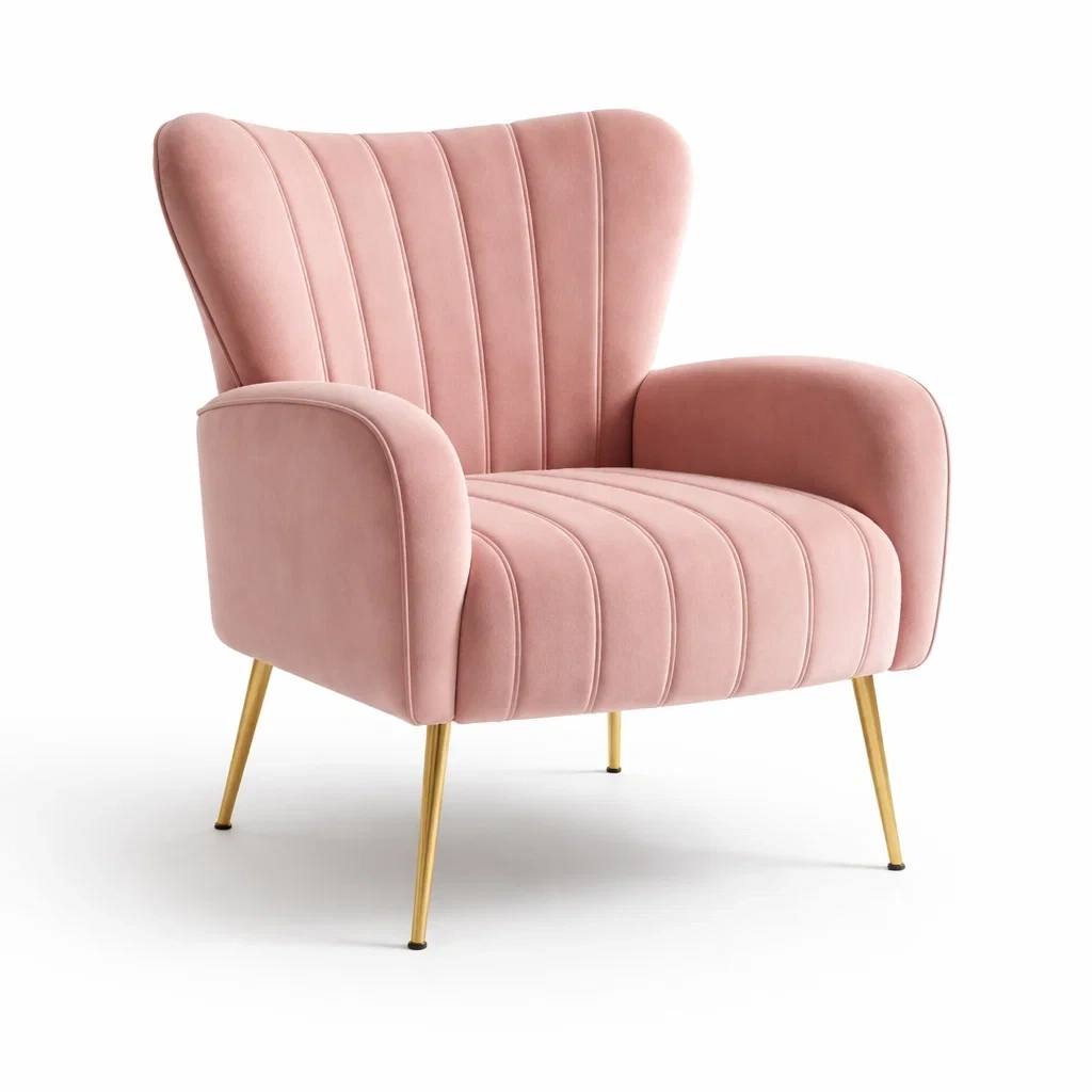Poltrona in velluto rosa con struttura in acciaio dorato