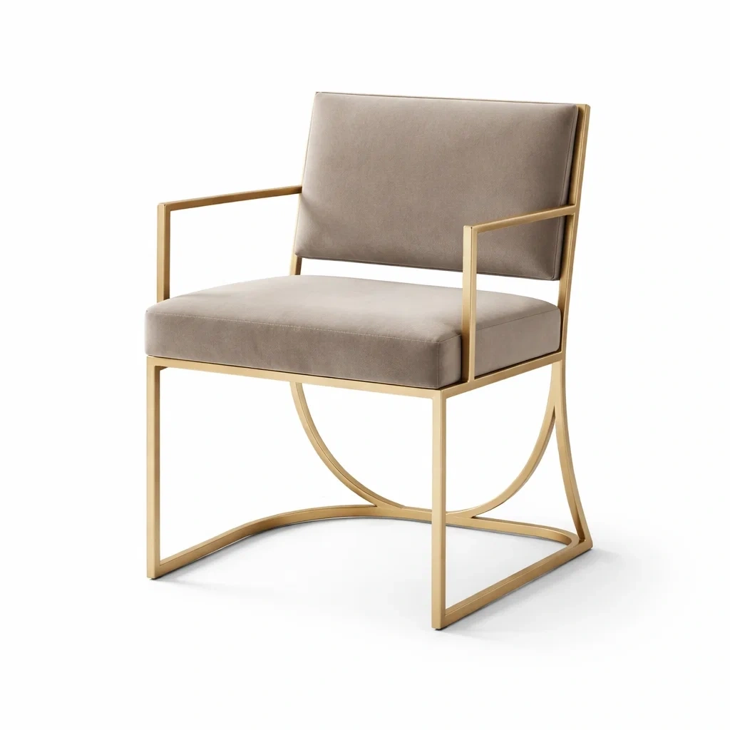 Poltrona in velluto con gambe in metallo dorato