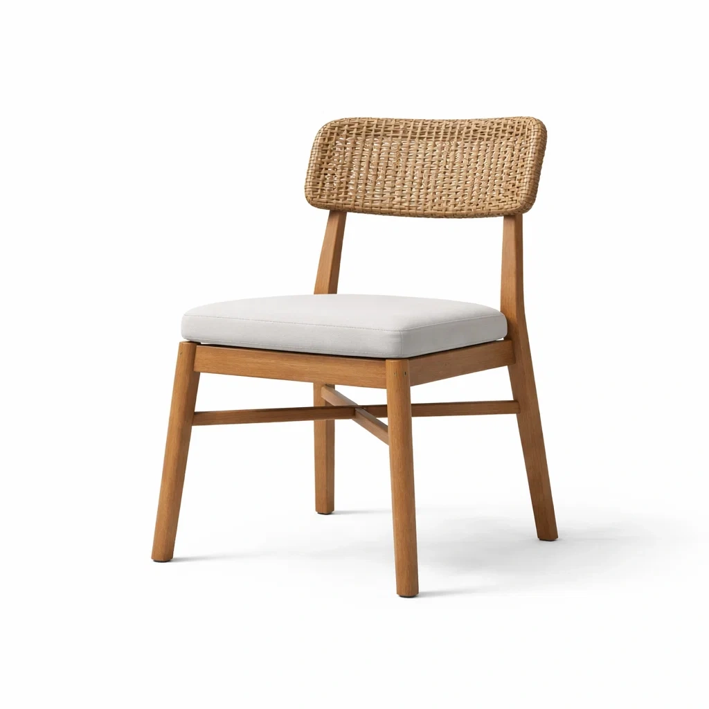 Sedia da pranzo da interno in rattan con cuscino in cotone altezza