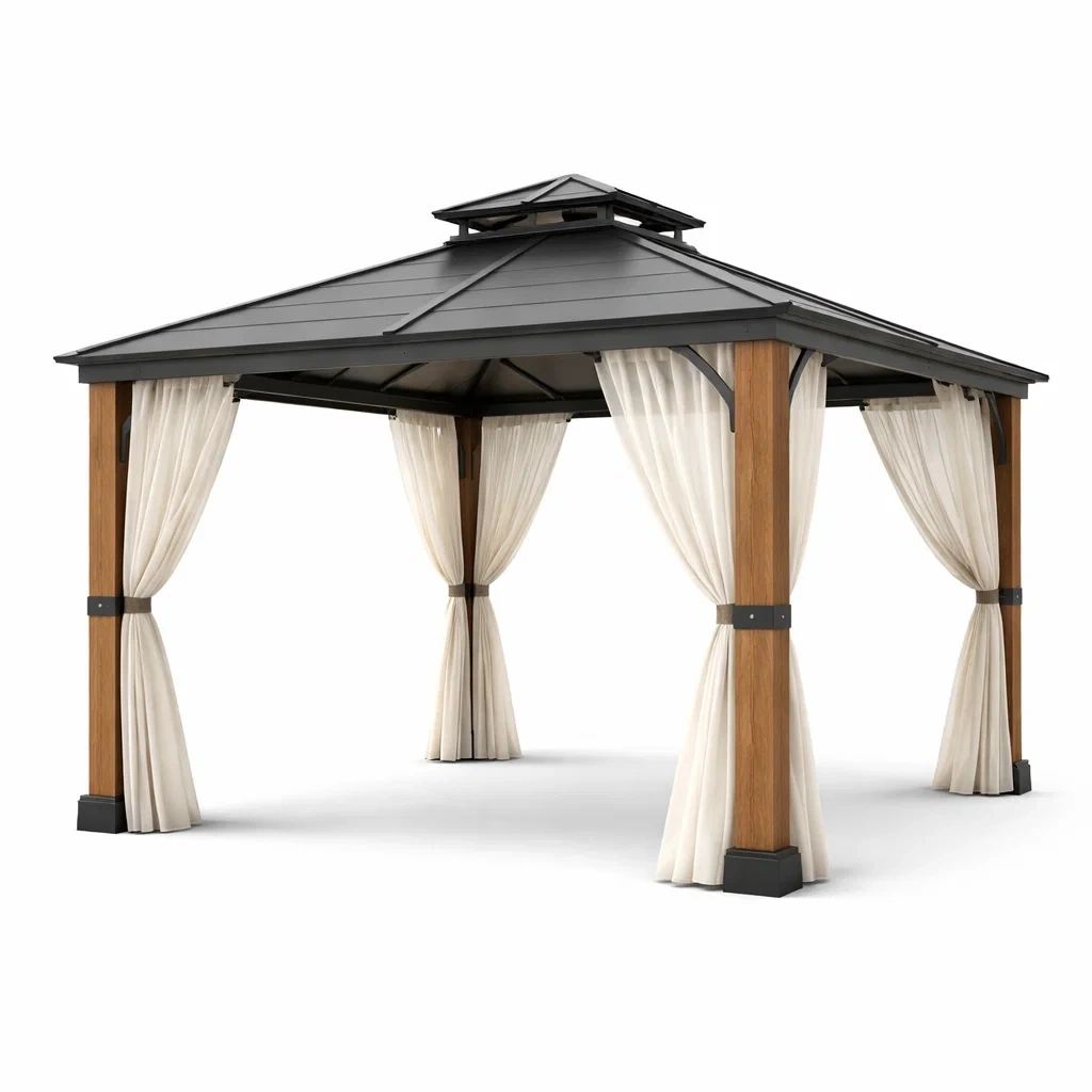 Materiale: Struttura in alluminio rivestito e legno trattato; tetto in acciaio